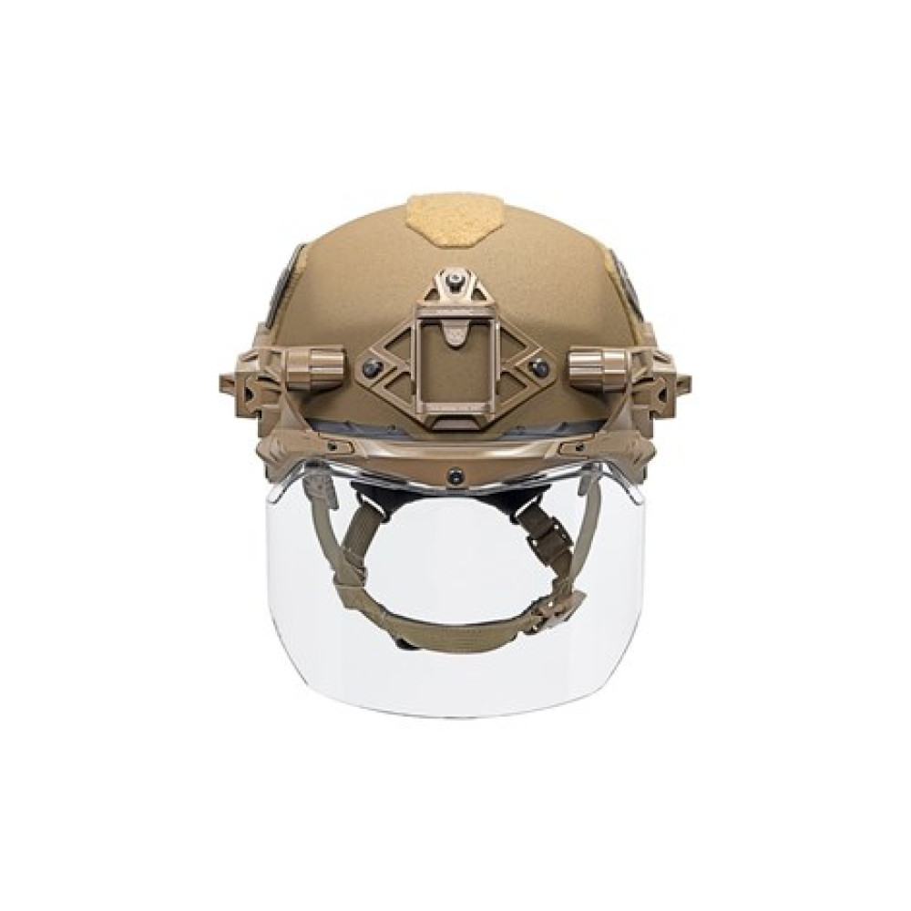 EXFIL® Face Shield – це низькопрофільна, легка система лицьового захисту, яка швидко та без інструментів кріпиться до передньої частини EXFIL® Rail 3.0. EXFIL® Face Shield поставляється стандартно з гнучким верхнім фланцем, який запобігає попаданню сміття та рідини в очі носія від козирка шолома. Він швидко регулюється в три встановлені положення (опущене, підняте і складене), дозволяючи носієві повністю використовувати кріплення Wilcox® W для ліхтарів, камер, нічних відеопристроїв або тепловізійних приладів, а також використовувати лицьовий щит.