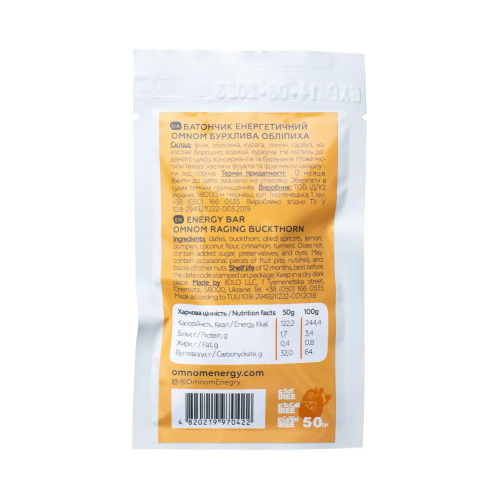 Батончик енергетичний OMNOM бурхлива обліпиха ЇDLO