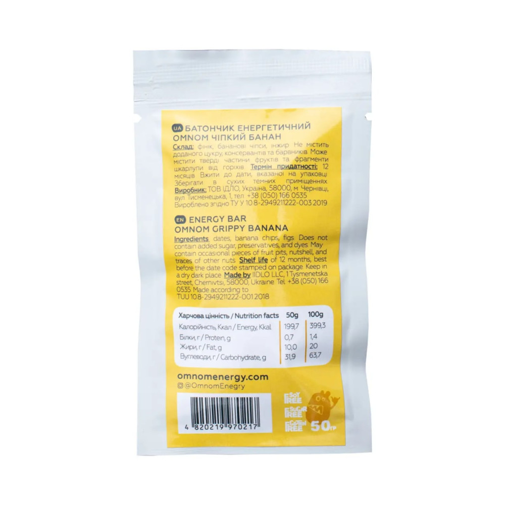 Батончик енергетичний OMNOM чіпкий банан ЇDLO