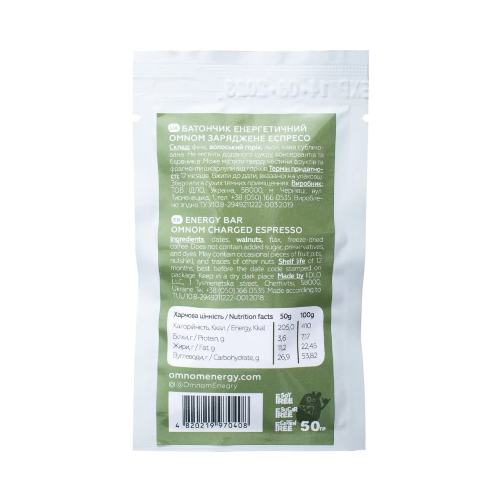 Батончик енергетичний OMNOM заряджене еспресо ЇDLO