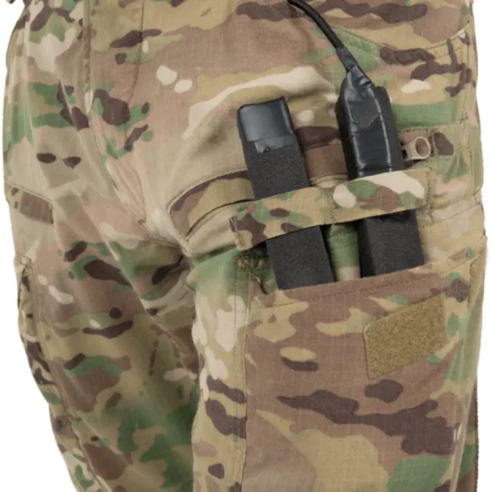 Особенности включают специальный усиленный держатель для ножа, петли для зарядки и крепление для фонарика, а также застёжку на VELCRO® для удобного и быстрого доступа. На бедре расположена молниеносная карман, оптимально подходящая под размер телефона. Регулируемый пояс с низкопрофильной застёжкой обеспечивает комфортную посадку. Карманы на бедрах оснащены боковыми вставками для расширения и термосклеенными клапанами, которые аккуратно прячутся внутри.