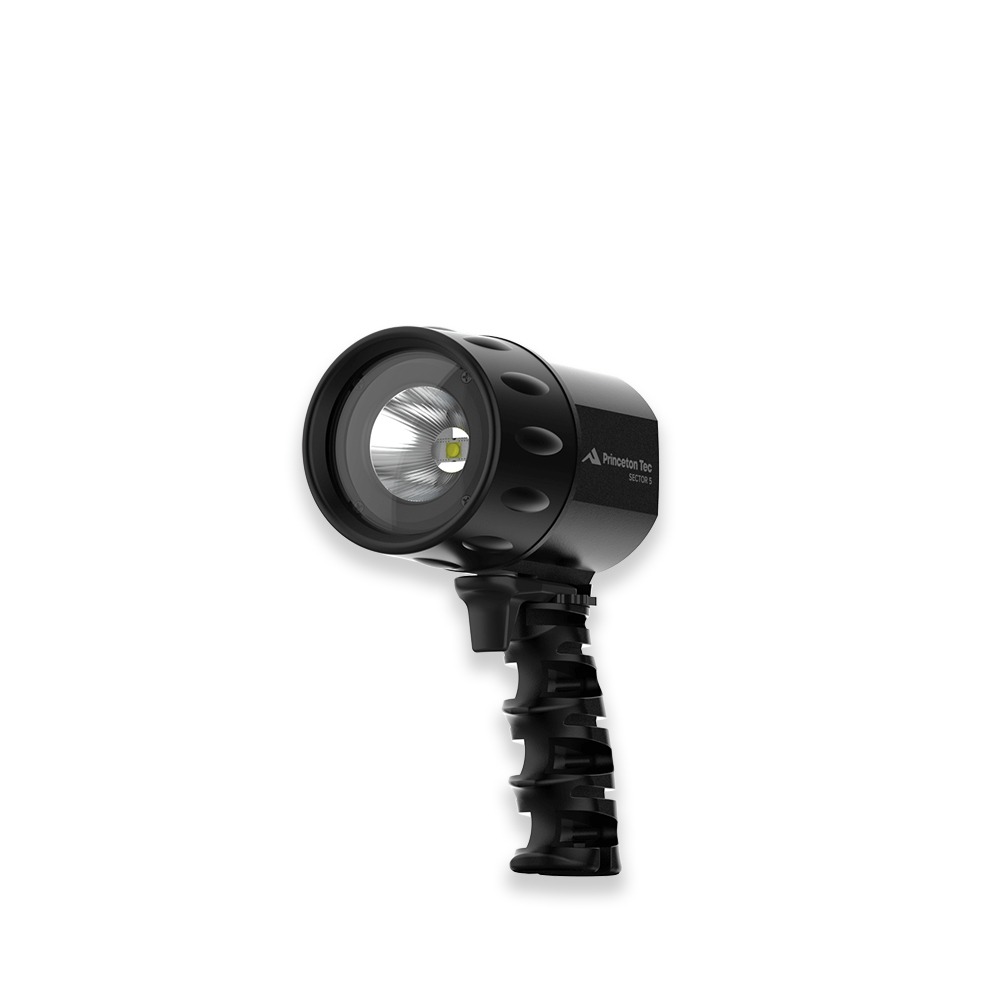 Princeton Tec Sector 5 — це потужний ручний ліхтар / дайв-ліхтар з ергономічним тригерним перемикачем, розроблений для інтенсивного використання під водою та на суші. Він забезпечує яскравий світловий потік до приблизно 1200 люмен, що дозволяє ефективно освітлювати простір навіть на значній відстані.