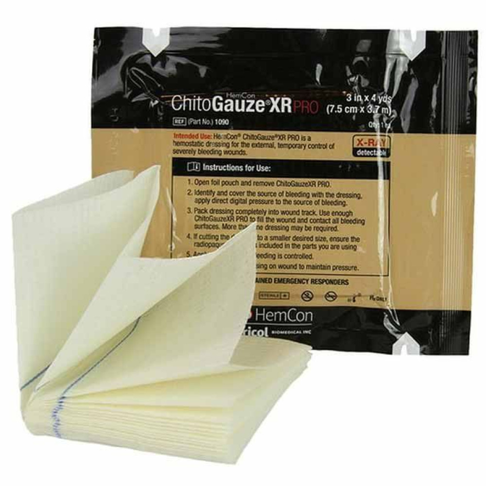 ChitoGauze® XR PRO — це гемостатична марля рекомендована СоТССС, розроблена для контролю помірної та дуже сильної кровотечі. Має рентгеноконтрастну смужку, що дозволяє легко ідентифікувати пов’язку під час рентгенівського дослідження. ChitoGauze® XR PRO легко адаптується до широкого діапазону профілів ран, дозволяючи легко упаковувати рану та швидко контролювати кровотечу. Хітозан просочується через пов’язку та спеціально розроблений для обмеження попадання частинок у рану, на відміну від інших пов’язок, доступних на даний момент.
