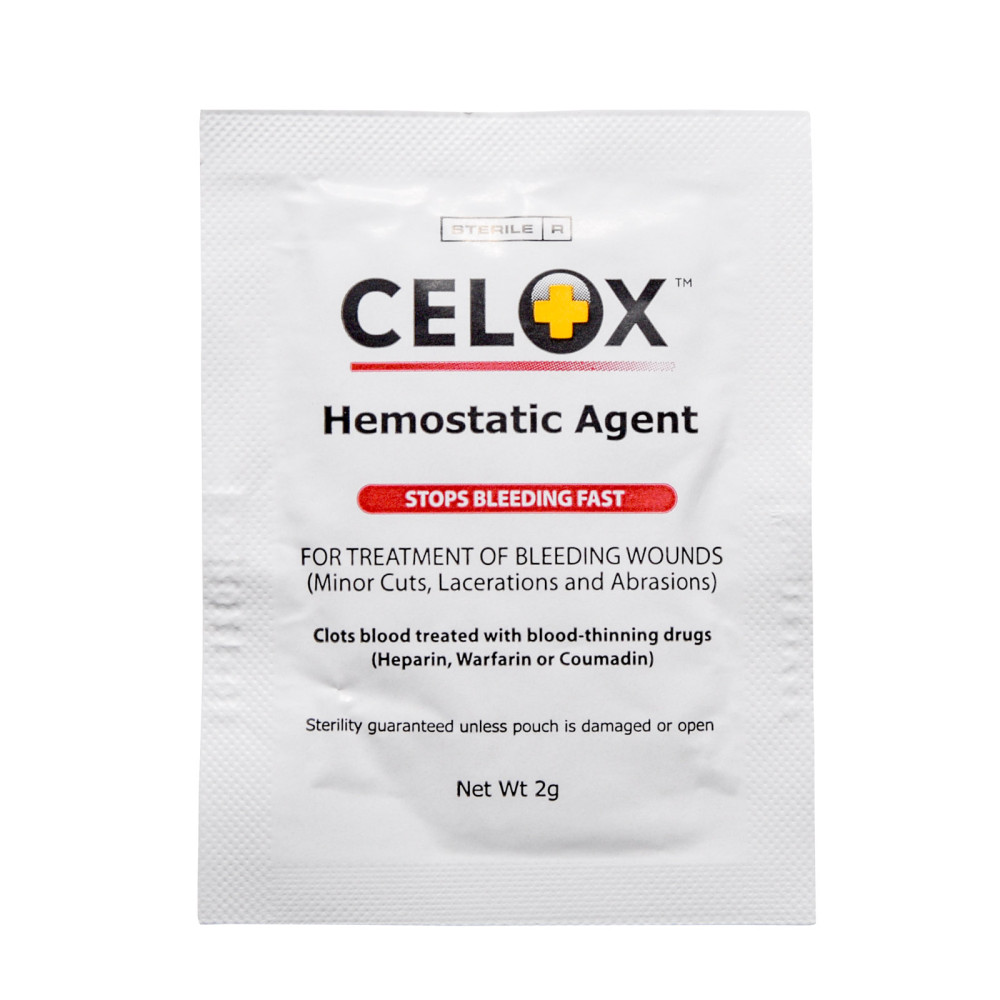 Celox є універсальним кровоспинну препаратом, який можна застосовувати як при незначних кровоточивих порізах та саднах, так і при важких травмах і пораненнях. Кожен пакетик Celox містить 2 г препарату. Він дуже простий у використанні - просто розірвіть пакетик, висипте вміст на рану і туго перебинтуйте її. Потрапляючи в кров, компоненти Celox (зокрема, хітозан) утворюють велику кров'яну пробку, схожу на густий гель, тим самим зупиняючи кровотечу. Швидке згортання крові при змішуванні з Celox було доведено лабораторними тестами. Для цього кров насичували антикоагулянтом варфарином, який перешкоджає згортанню крові.