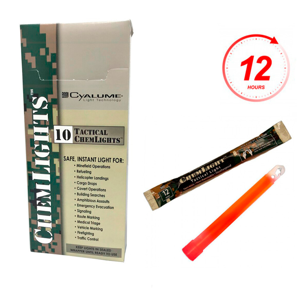 Коли Ваша місія залежить від тактичного освітлення, для навчання потрібні моделюються пристрої для реалістичних підписів або як видимий, так і інфрачервоний джерела світла для відстеження, маркування та освітлення для тактичних, прихованих операцій і операцій з надання гуманітарної допомоги, ChemLight - це ім'я, якому можна довіряти. Cyalume Technologies є ексклюзивним партнером по хімічному висвітлення в Збройних силах США, американських солдатах, федеральних агентів, федеральних і місцевих службах реагування, які вже понад 5 десятиліть використовують наші інноваційні продукти для навчань і польових операцій.