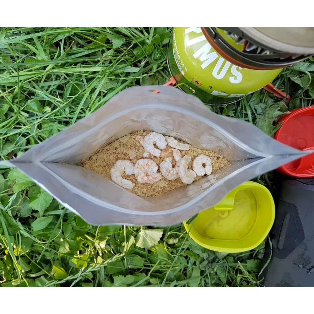 Метод приготування: струсити та відкрити пакет, дістати поглинач, залити страву окропом 350 мл (до рівня 8 на лінійці справа), закрити замок на пакеті та зачекати протягом 10 хвилин, насолоджуватися стравою. Не панікувати, якщо “пощастило” спробувати поглинач на смак, це абсолютно безпечно.