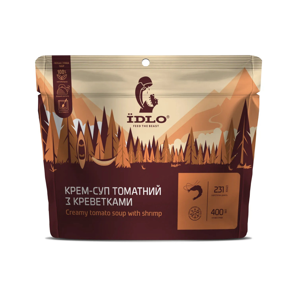 Склад: пюре гороху нут, креветки атлантичні варені сублімовані, помідори сушені, паприка сушені, базилік сушений, цибуля сушена, мускатний горіх, коріандр, морська сіль. Виготовлено методом сублімації та інфрачервоної сушки натуральних інгредієнтів.