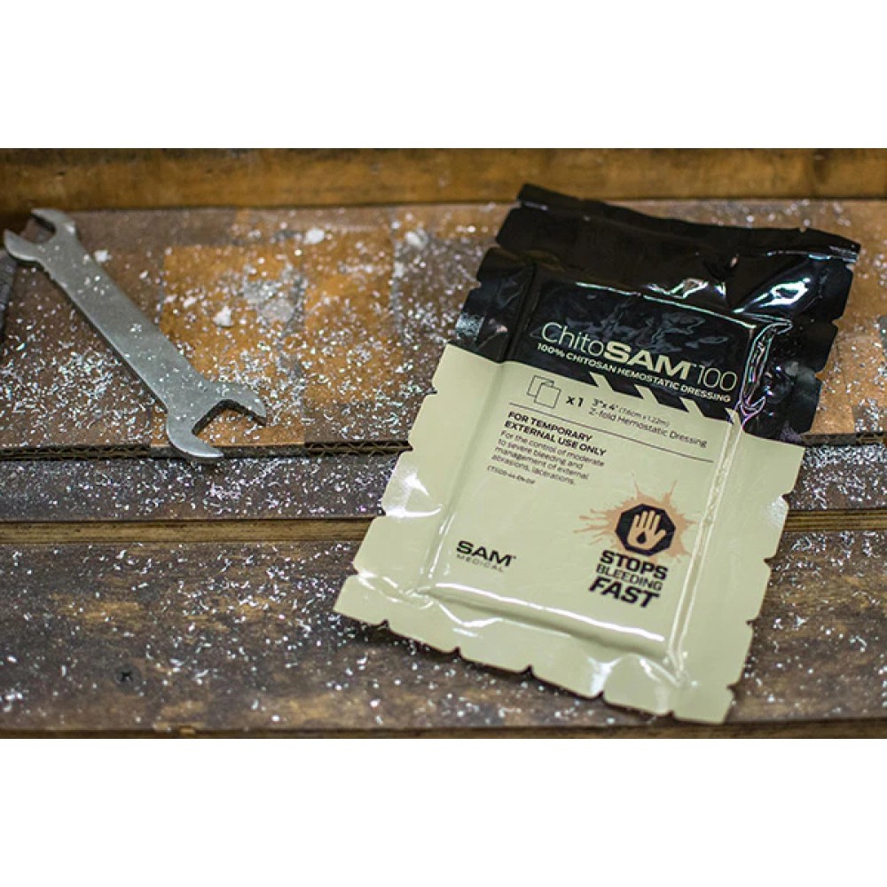 - Завдяки великій історії використання хітозану в екстрених ситуаціях, військовій справі та роздрібній торгівлі, ChitoSAM™ 100 оптимізовано для простоти використання та швидкої зупинки кровотечі;