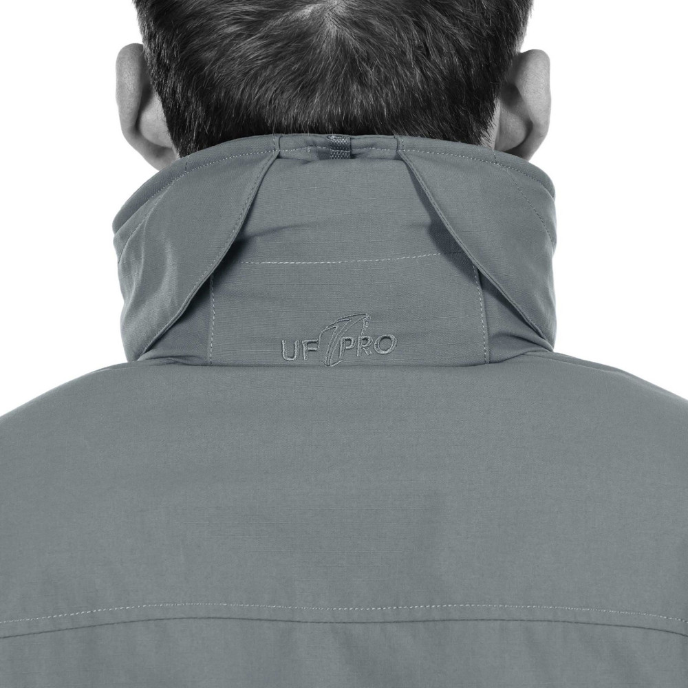 Оновлена структура основної тканини: традиційно софтшелл-куртки мають три структурні шари (зовнішній матеріал, мембрана, мікрофліс), які склеюються між собою, роблячи виріб товстішим і важчим. Дизайнери UF PRO замінили клей повітряним прошарком, що покращило повітропроникність і підвищило рівень теплоізоляції.