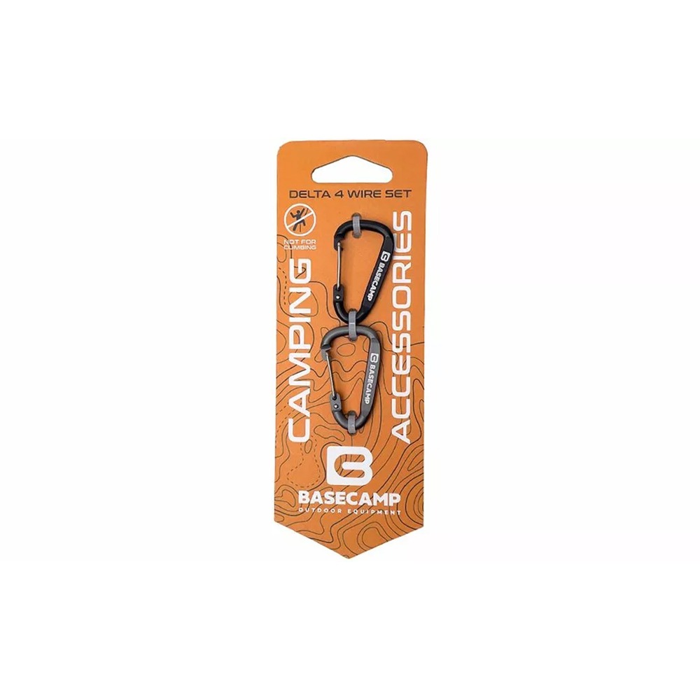 Набір алюмінієвих сервісних карабінів Base Camp Delta 4 Wire Set Black/Grey - комплект із двох легких сервісних карабінів D-подібної форми з дротяною застібкою, призначених для кріплення спорядження, посуду, аксесуарів та інших речей у походах, кемпінгу або повсякденному використанні.