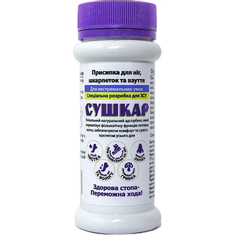Присипка-осушувач для ніг, шкарпеток і взуття
