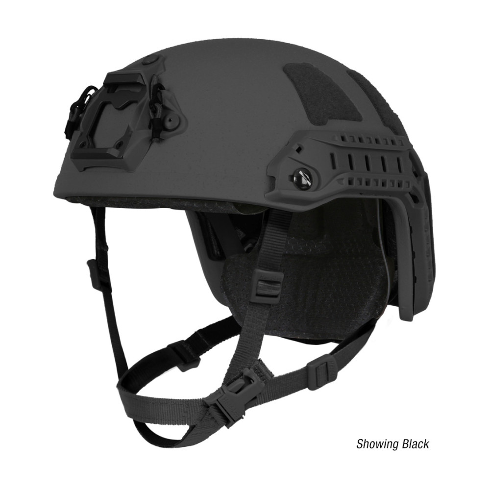 Має 3-точковий кожух Ops-Core® Skeleton™, що забезпечує універсальну сумісність з більшістю кріплень для ПНО, роз'єми для допоміжних напрямних (ARC) з гачками та зовнішньою петлею VELCRO®.