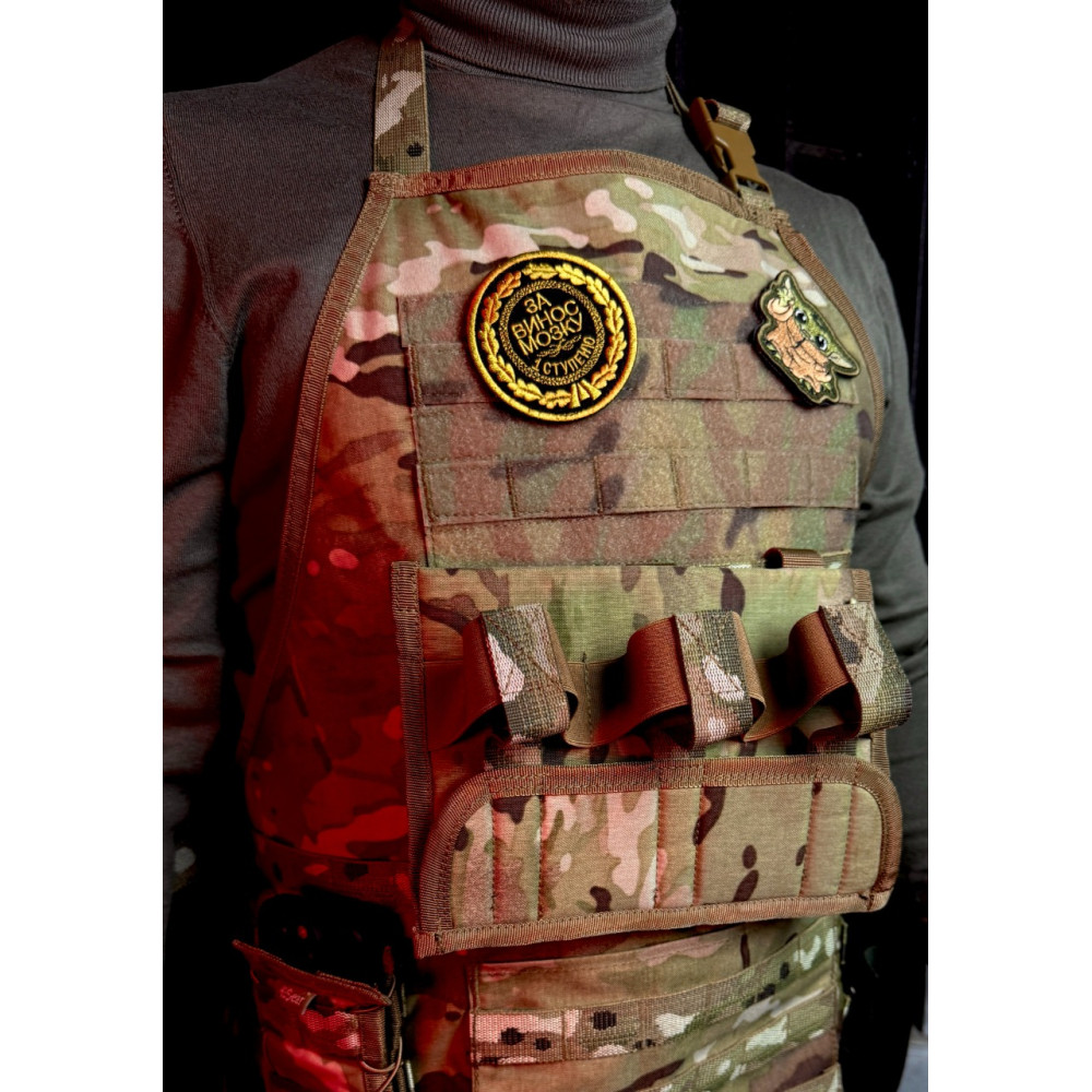 На грудях розміщена панель Velcro для розміщення різноманітних патчів та шевронів.